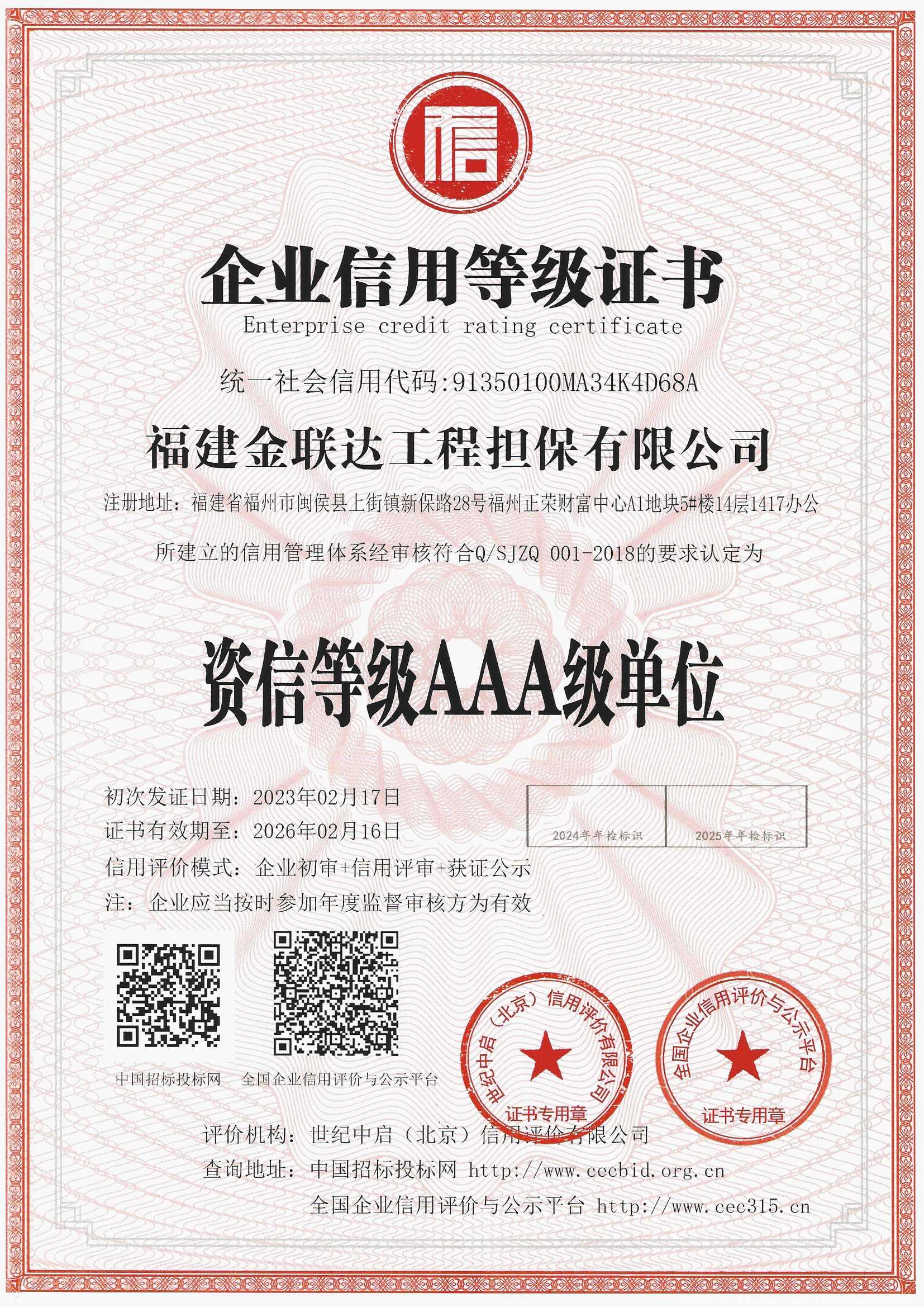 福建金聯達工程擔保有限公司,成立日期2020年8月,注冊資金5000萬元整,注冊地址位于福建省福州市閩侯縣上街鎮新保路28號福州正榮財富中心A1地塊5#樓14層1417辦公。秉承著為建筑企業(yè)服務的理念,致力于工程擔保行業(yè),攜手各金融機構,為貫徹國家對建筑企業(yè)減負的政策貢獻力量。
